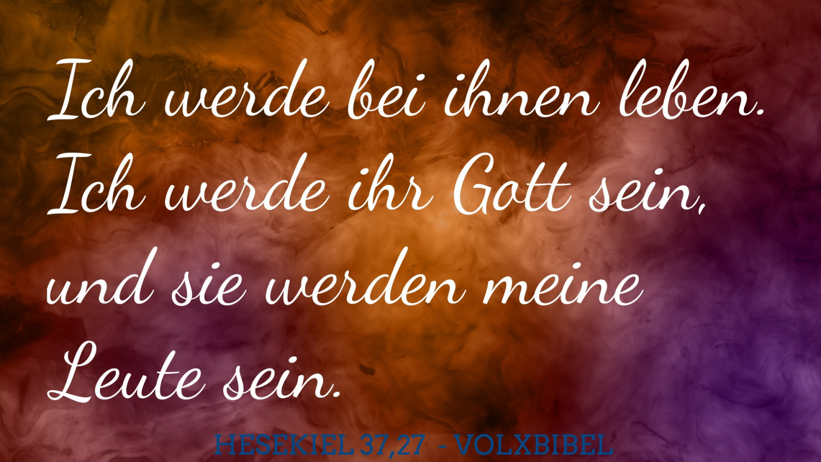 Meine Wohnung aber wird über ihnen sein -( aL: und meine Wohnung soll bei ihnen sein. ) -; ich will ihr Gott sein, und sie sollen mein Volk sein.