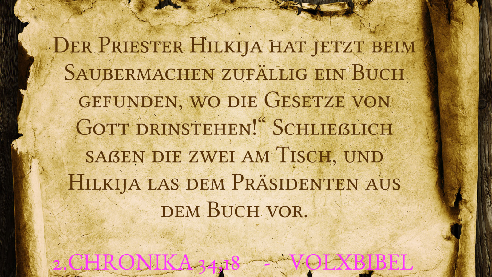 Und Schaphan, der Schreiber, berichtete dem König und sprach: Der Priester Hilkija hat mir ein Buch gegeben. Und Schaphan las darin vor dem König. Elberfelder 1871 – 2.Chronika 34,18