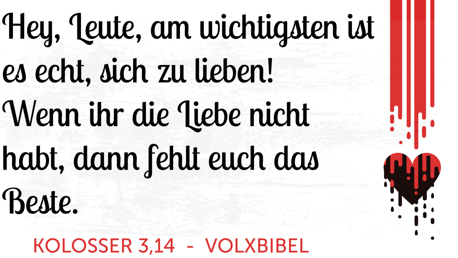 Vor allem aber bekleidet euch mit der Liebe; sie ist das Band, das euch zu einer vollkommenen Einheit zusammenschließt.