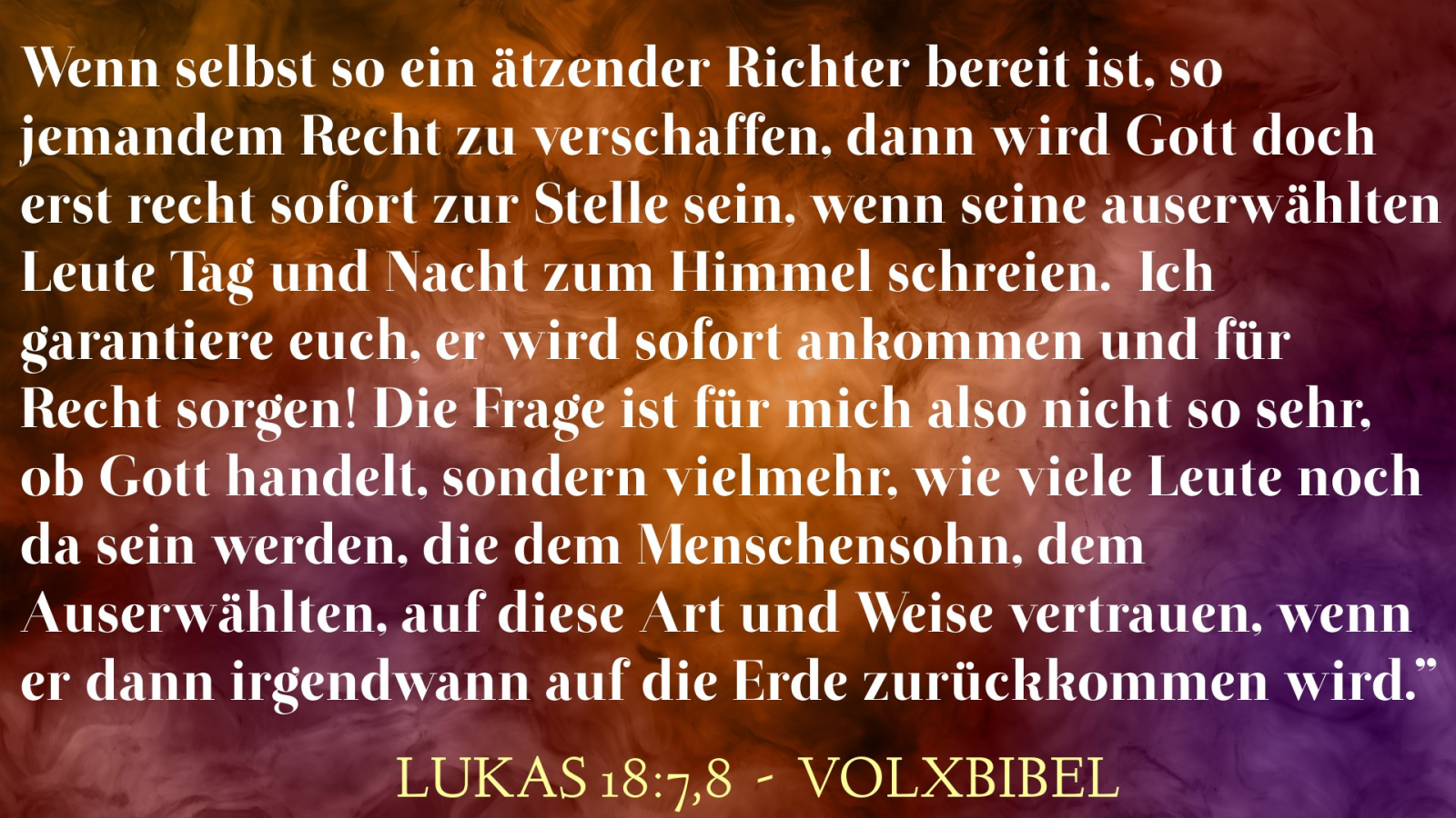 Und nimm fort von uns unsere Verfehlungen! Und auch wir werden denen vergeben, die uns gegenüber Schuld auf sich geladen haben. Und lass uns nicht in Lebenslagen geraten, in denen die Prüfungen überhandnehmen!«