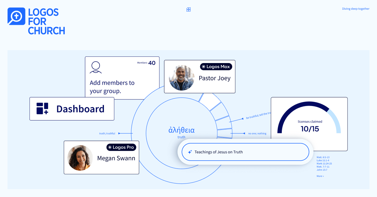 Wir haben gerade Logos for Church eingeführt – ein einziges Abonnement, mit dem Sie Ihre gesamte Gemeinde mit den weltweit führenden Bibelstudien-Tools ausstatten können.